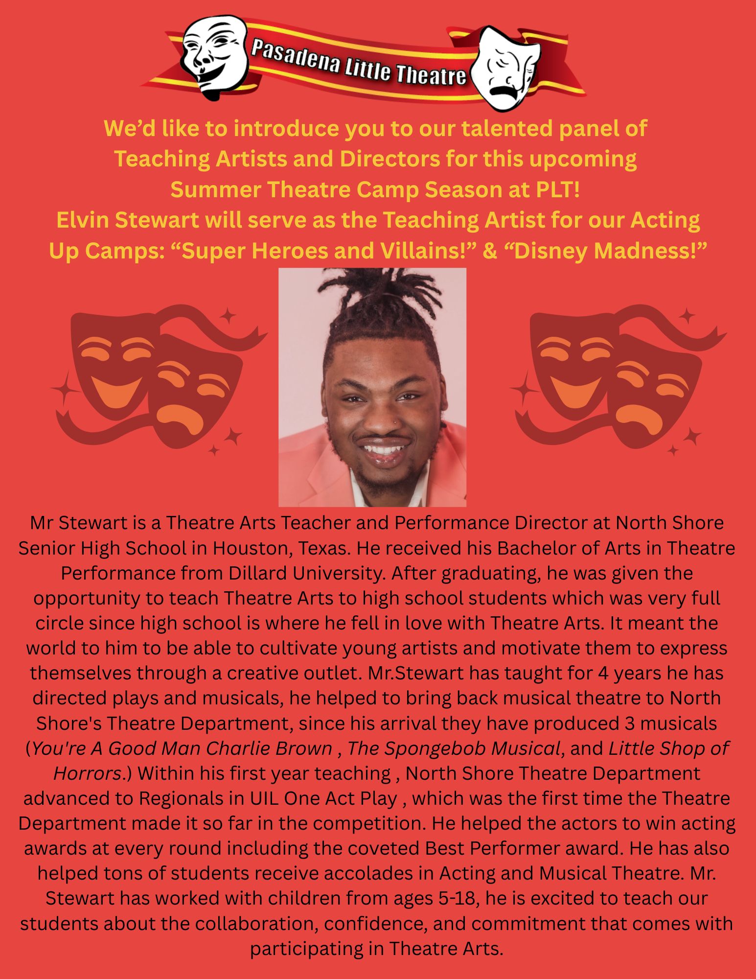 * Once registered, you will get an informational email to explain everything you need to know about what a summer camp at Pasadena Little Theatre will be like.